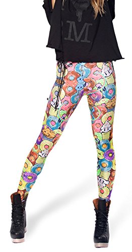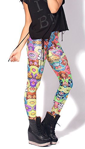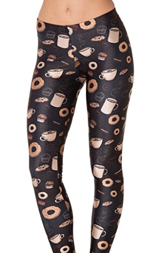 Jescakoo Food Print Cute Fun Caffe Donuts Leggings Stretchy Skinny Pants for Women 20