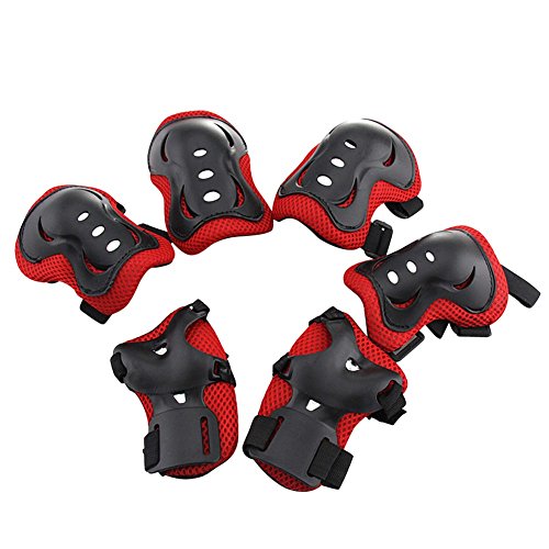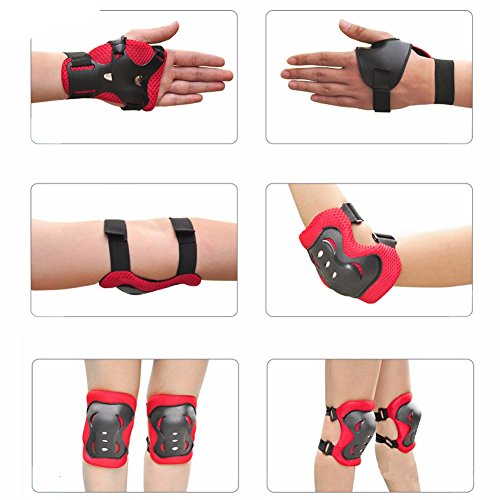 Product DescriptionSpecifics: Type: Knee pads Elbow pads Wrist pads Material: PVC breathable mesh sponge elastic straps Knee Protector Size : 5" x 3.6" (L*W)/12.7 x 9.1cm Elbow Protector Size: 4" x 3.5" (L*W)/10.1 x 8.8cm Wrist pads size: 5" x 2.6" (L*W)/12.7 x 6.6cm Color: Red Black, Pink Suitable for:3-8 years old Weight: about 200g Suitable Sport: Skateboard Skateboarding Roller Rollerblade Bicycle Ride Bike Cycling BMX bike Outdoor activities Other extreme sports Package Included: 2xWrist guard 2xKnee pads 2x Elbow pads0