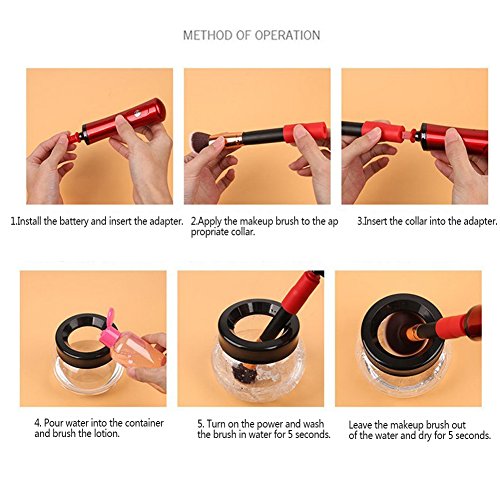 - [ Easy to Operate ] – Just 4 Steps: 1-Put water & soap into the bowl. 2-Dip & dunk the brush in soap water. 3-Spin to clean. 4-Spin to dry. Besides, 8 collars fit for most makeup brushes with various sizes.