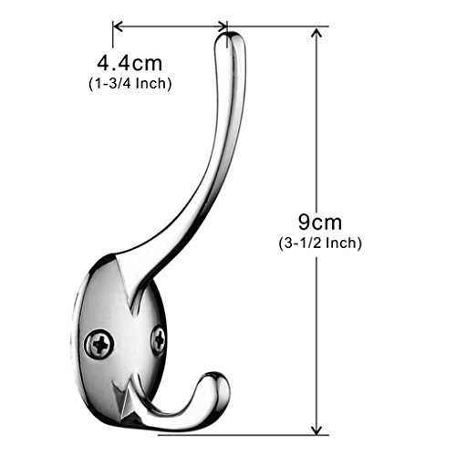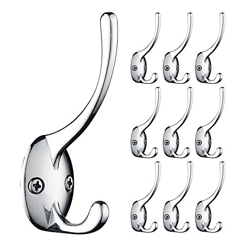 Mellewell 10 PCS 3-1/2 inch Double Prong Robe Hook Coat and Hat Hooks Wall Hangers Closet Organizer Chrome (Screws included), 13002-10C