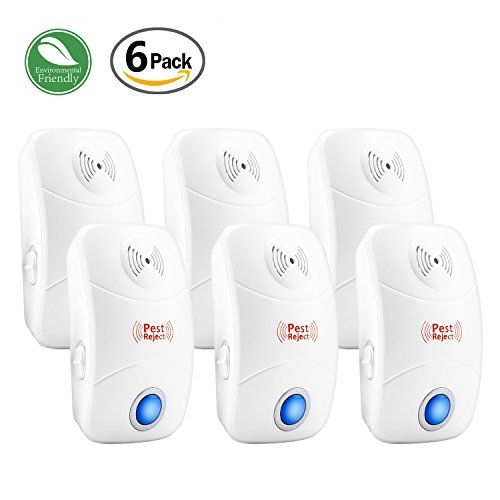 Ultrasonic Pest Control Repeller - Electronic Plug In Insect Repellent for Mice Bugs Ants Rat Roaches Mouse Mosquitoes Termite Flea Spider Flies Cockroach - Indoor Use With On/Off Night Light - 6 Pack