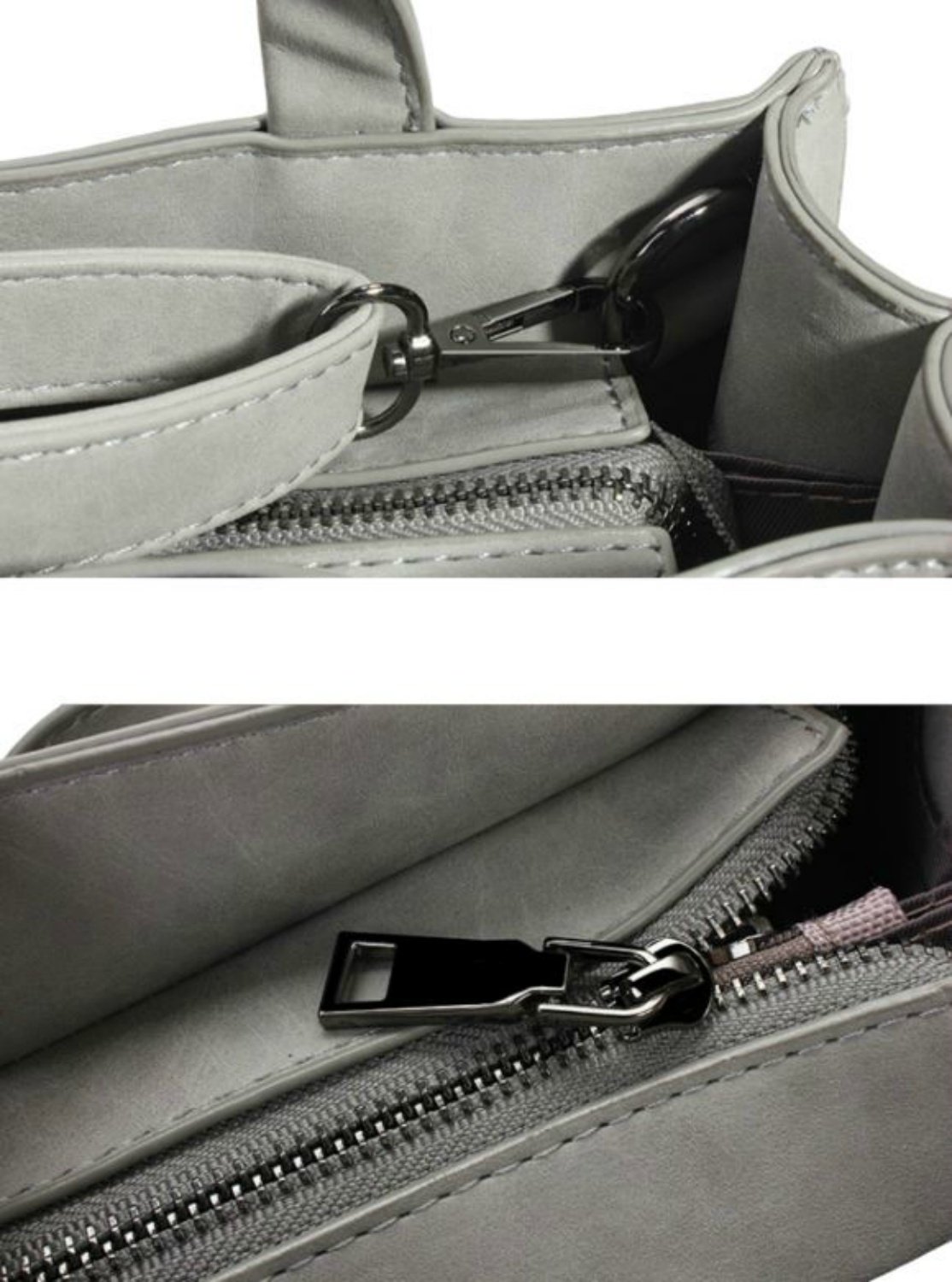 Pocket 3: Located in the center of the bag, with a zip, it is 15 cm wide and 10 cm long.