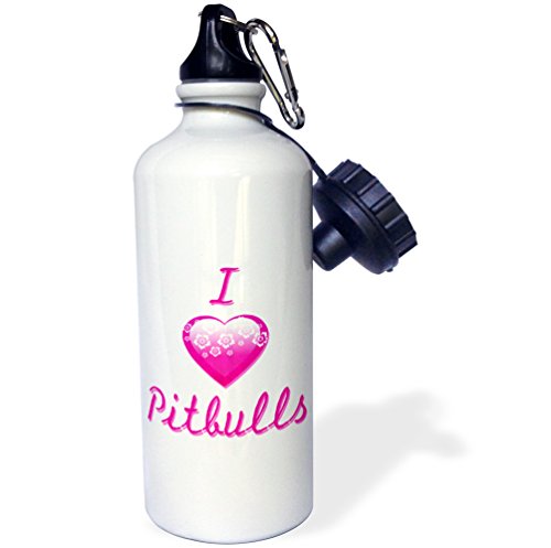 3dRose wb_121722_1 "Pretty Pink Flowery I Love Pitbulls" Sports Water Bottle, 21 oz, White