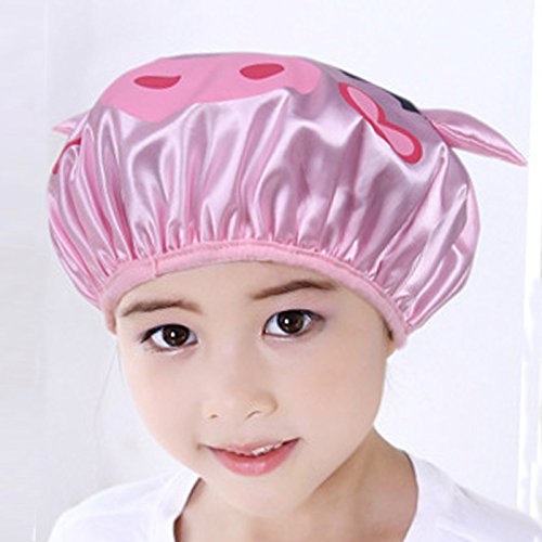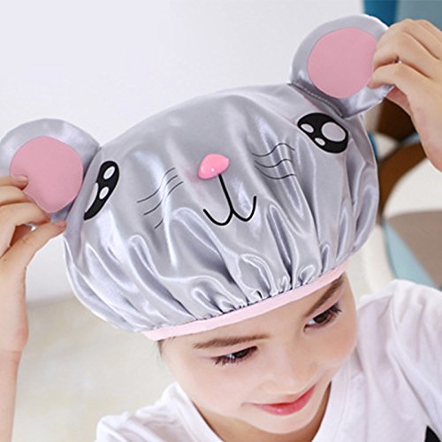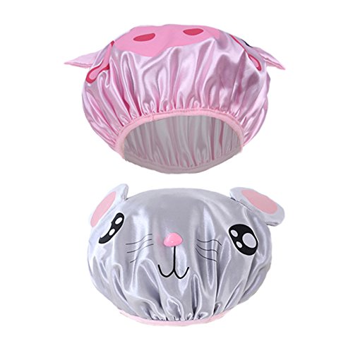2 Pieces Cute Kids Shower Cap, Funny Cartoon Bath Hat ,Boys or Girls Waterproof Shower Bath Caps (Gray Mouse + Pink Pig)