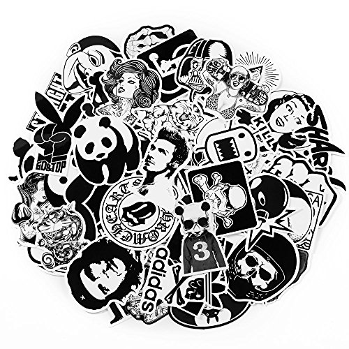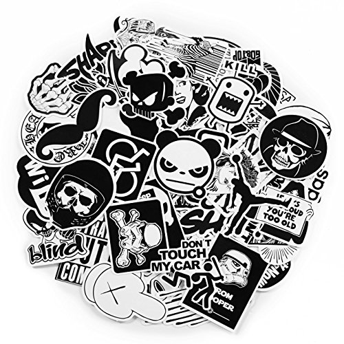 60-Pack SuprCool Stickers (Black & White) Laptop Cellphone Pad Skateboard Luggage Car Motorcycle Bicycle - Random Sticker Set