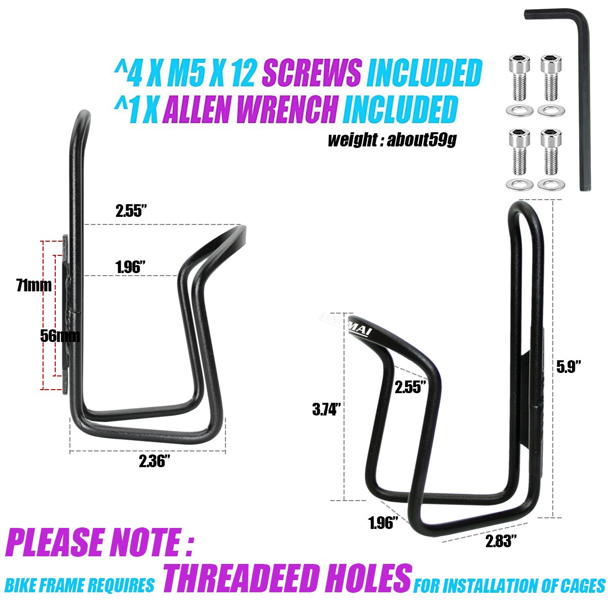 The size of the attached screw is the standard size for mounting the bottle cage.