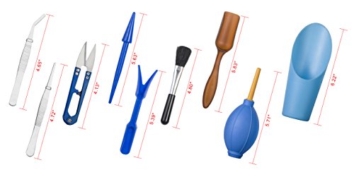 - 9 VARIOUS TOOLS: Include 1 Multifunctional Transplanting Stick, 1 Ripping Stick, 2 Tweezers, 1 Scissors, 1 Cleaning Brush, 1 Bucket Shovel, 1 Air Dust Blower, 1 Pail Shovel.