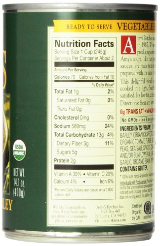 Amy's Organic Soups, Low Fat Vegetable Barley, 14.1 oz