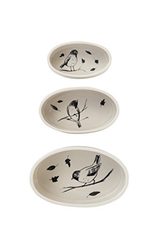 Creative Co-op DA6105 Stoneware Oval Ramekin Set with Birds, Multicolor