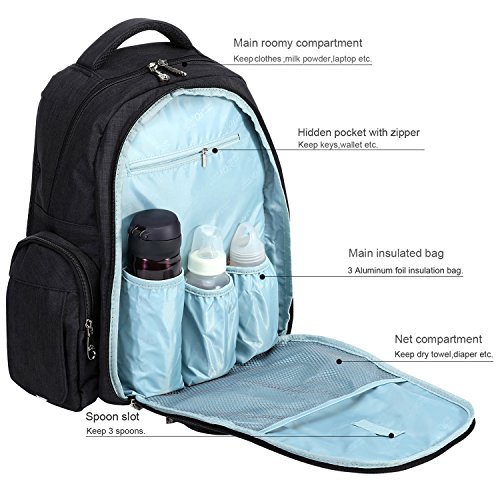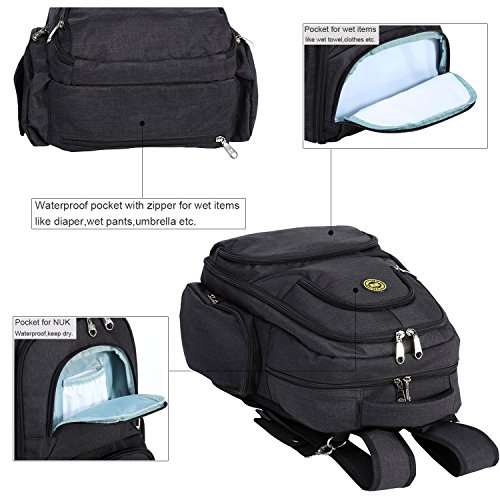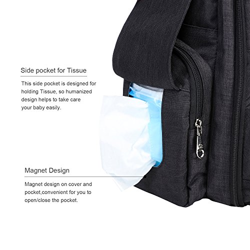 Big Sale - Baby Diaper Bag Waterproof Travel Diaper Backpack with Changing Pad and Stroller Clips (Black)