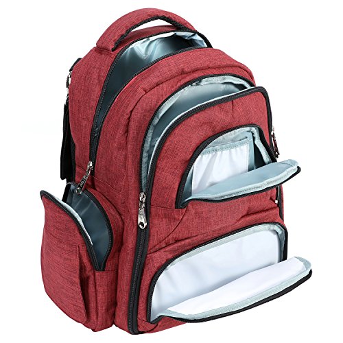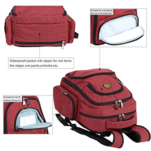 Baby Diaper Bag Waterproof Travel Diaper Backpack with Changing Pad and Stroller Clips (Red)