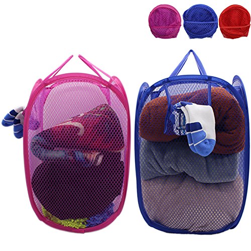 (Free Walker)/Vacuums, Cleaning Storage/Cleaning Supplies/DIRECT FROM USA/Mesh Pop-Up set of 2 Laundry Hamper with Side Pocket and Handles -Clothes Hamper (Blue and Red/...
