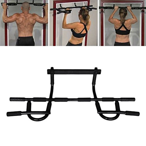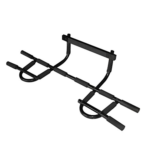 Features: - Strengthen and tone chest, arms, shoulders, back, abs and more! - For pull ups and chin ups, sit ups, push ups, and dips - Attaches and removes from door frame in seconds - very easy to assemble - Heavy duty steel construction - HEAVY DUTY steel tubing doorway chin pull up bar with black POWDER COATING and FOAM HANDLES