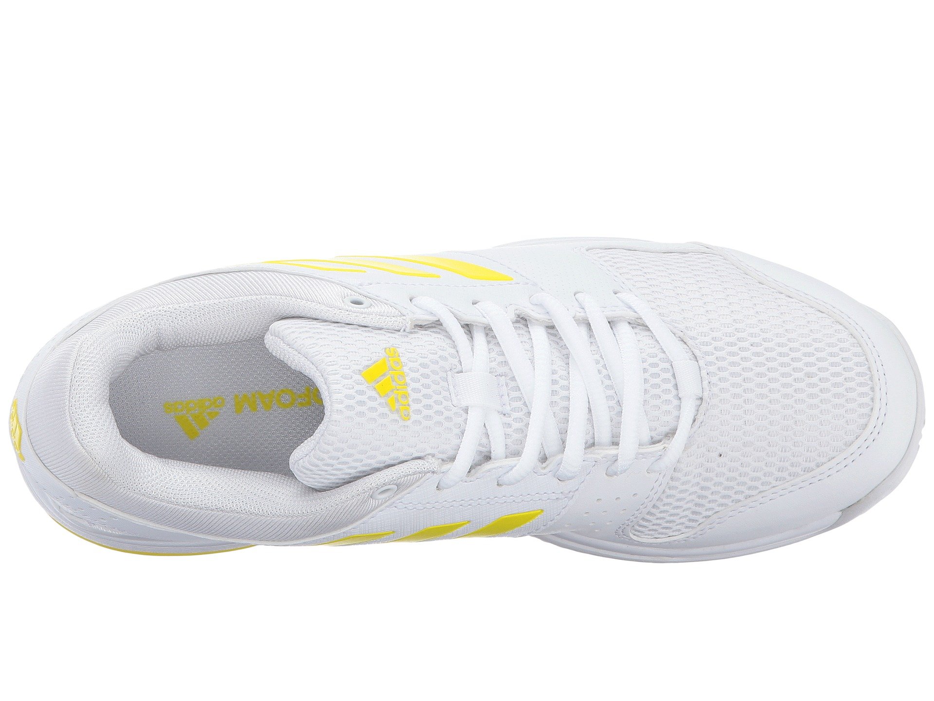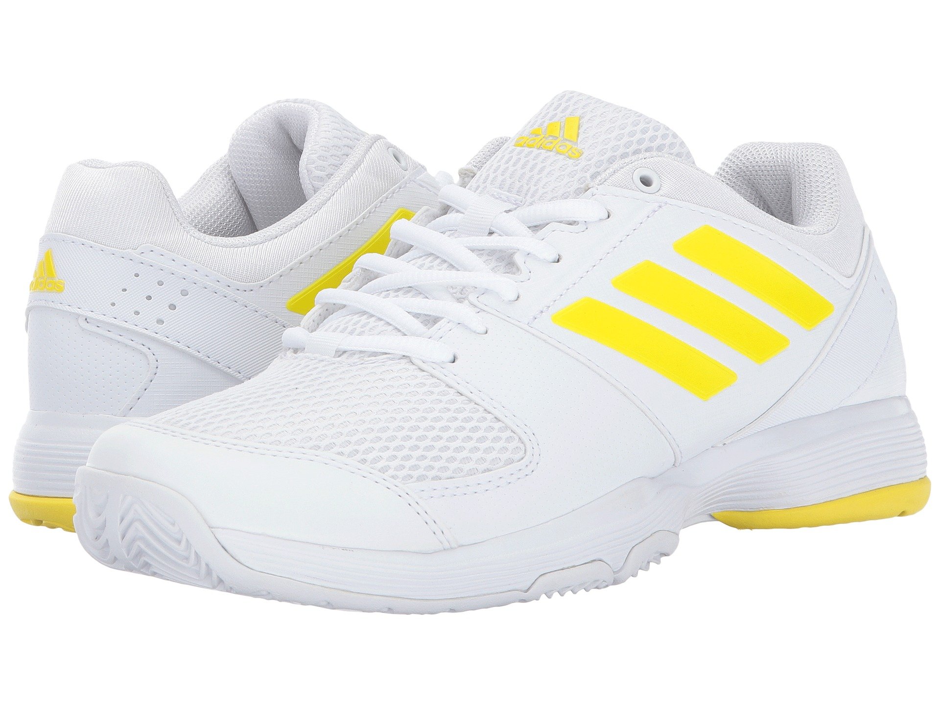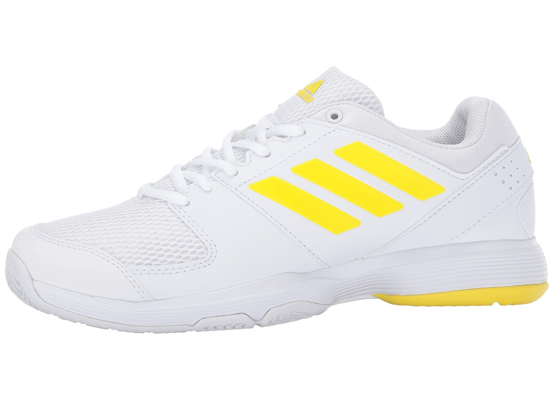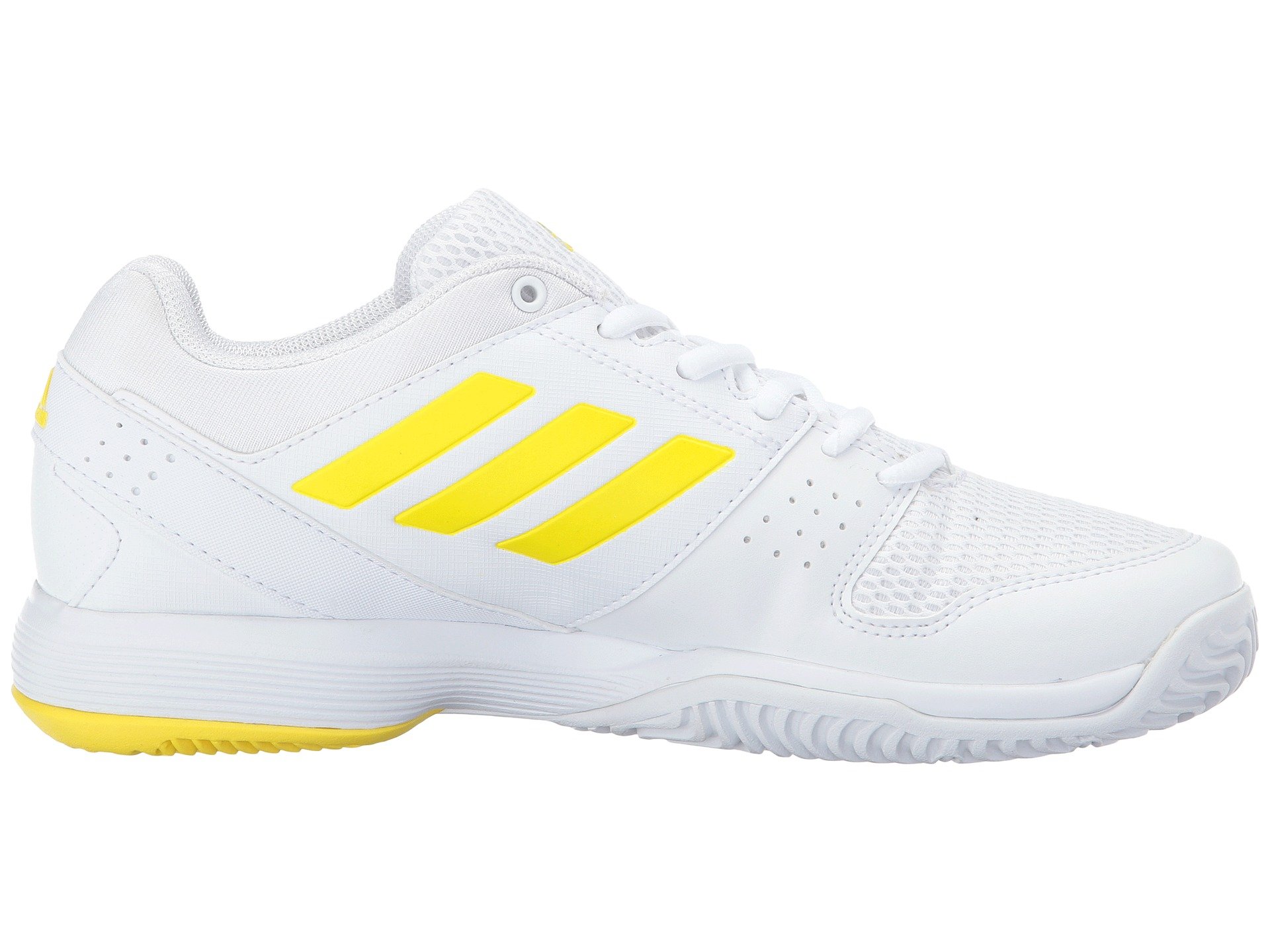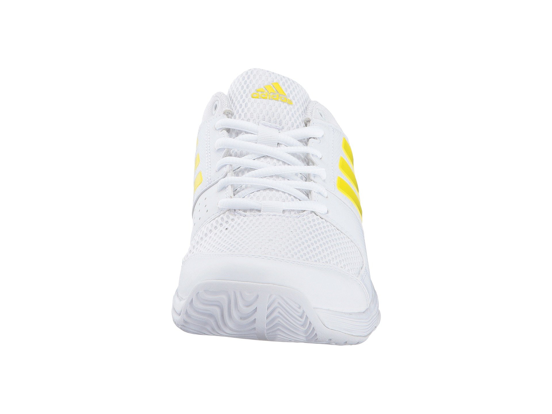 | Product Information SKU: #8641179Keep soles in uncompromising comfort match after match in the adidas? Barricade Court 2 tennis sneaker!Breathable synthetic upper materials provide lateral support.Lace-up closure. Plush tongue and collar. Breathable mesh lining. Molded foam insole. ADIPRENE? midsole cushioning promotes daylong comfort. Full-length ADIPRENE?+ offers rebound performance. All-court rubber and ADIWEAR™ outsole materials deliver ultimate, high-wear traction. 3D TORSION? supplies adaptive mid-foot support, forefoot integrity, and rear foot stability. Imported.Product measurements were taken using size 7.5, width B - Medium. Please note that measurements may vary by size.Weight of footwear is based on a single item, not a pair.Measurements: Weight: 9 oz |