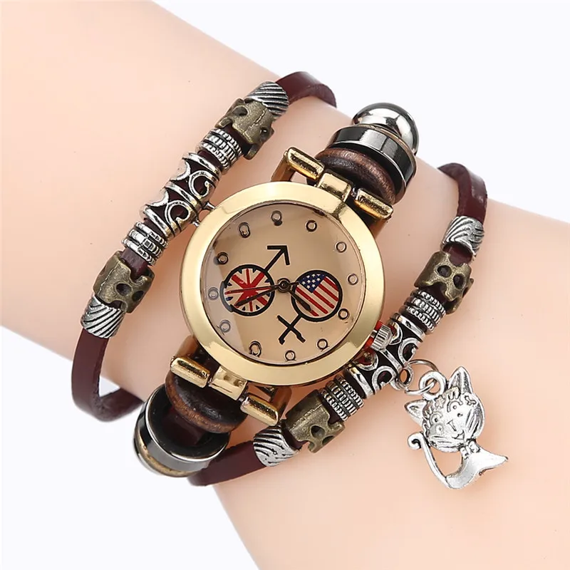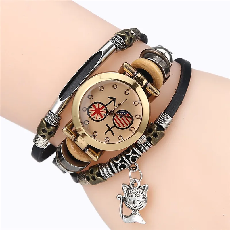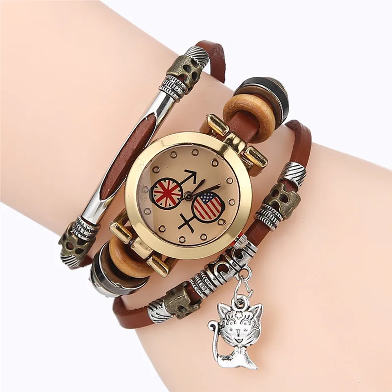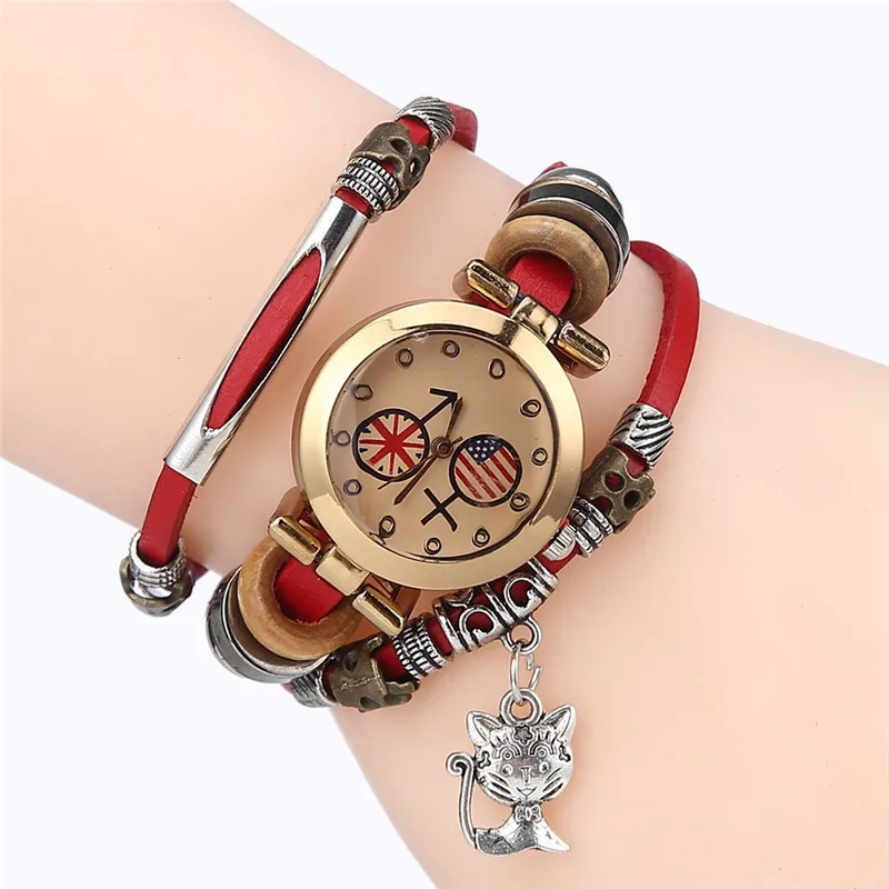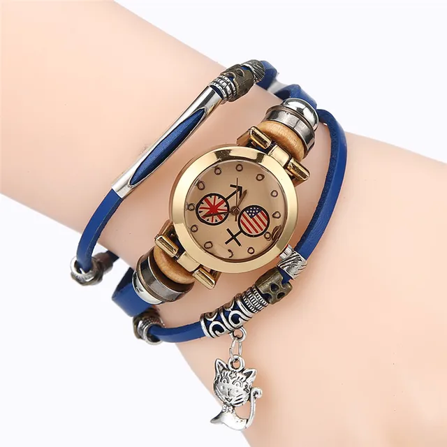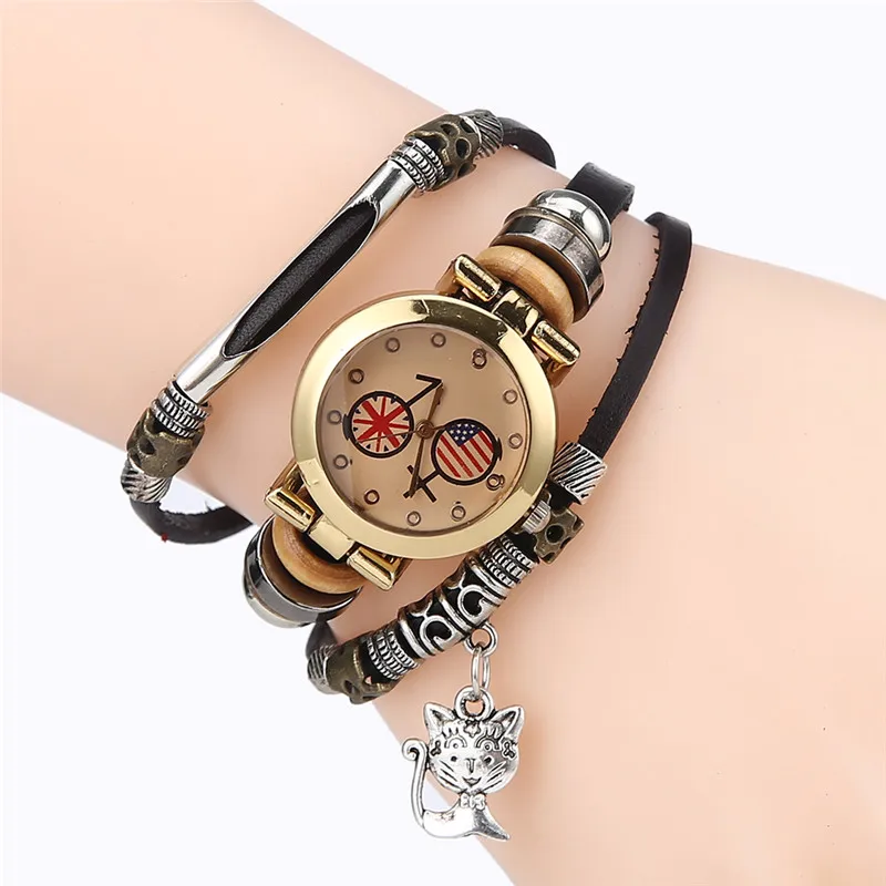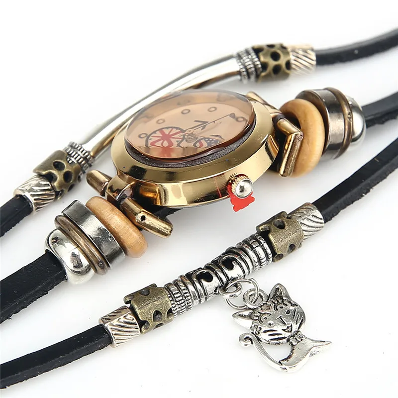 | [해외] FUNIQUE 고양이 펜던트 패션 여성의 팔찌 시계 Reloj Mujer 시계 여성 여성 석영 시계 캐주얼 학생 시간 |