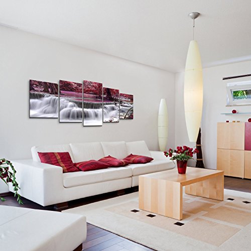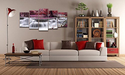-. Title : Markor Art Kx00202 Canvas P.R.Int for Living Room Decoration, Framed, Stretched , 5 Panels Red Dreamlike Waterfall Painting Wall Art Picture P.R.Int on Canvas- High Definition Modern Home Decor
