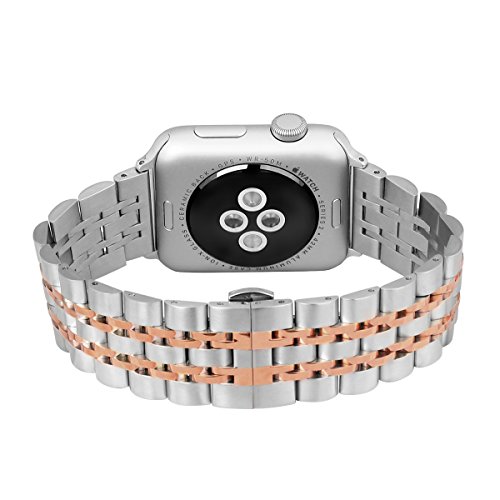 -. Feature : Middle Links Color Plating makes your watch outstanding, features luxury, nobility, elegance, durability and better breathability; Avoid friction / Compatible with Apple watch series 1, series 2, series 3, sport and edition version 42mm, premium stainless steel which are polished by a number of processes, more wear-resistant and corrosion-resistant, no rust / Fit wrist design, Carefully designed according to the wrist, Wear comfortable.Fine buffing & fine grinding surface. Fits 5.51"-8.27" (140mm-210mm) wrist; Replace this iWatch band in seconds whenever you want without any tool / Trusted butterfly clasp ensures the safety and beauty; firmly closed, and prevent loosen automatically, easily to take on / remove, safe and beautiful / Links Removal Tool Included- the band comes with removal tool which makes you possible adjust the band length yourself, take off several links if too long