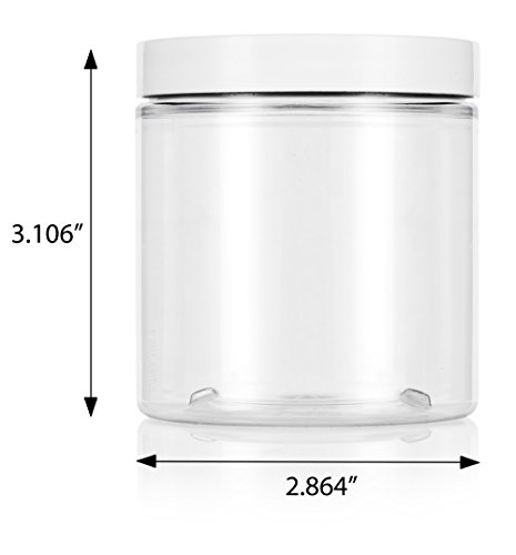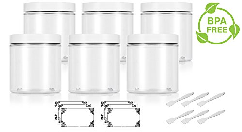 Clear 8 oz / 250 ml PET (BPA Free) Plastic Jar with White Lid (6 pack) + Spatulas and Labels