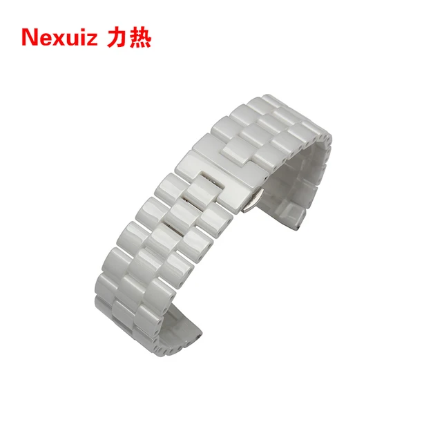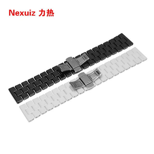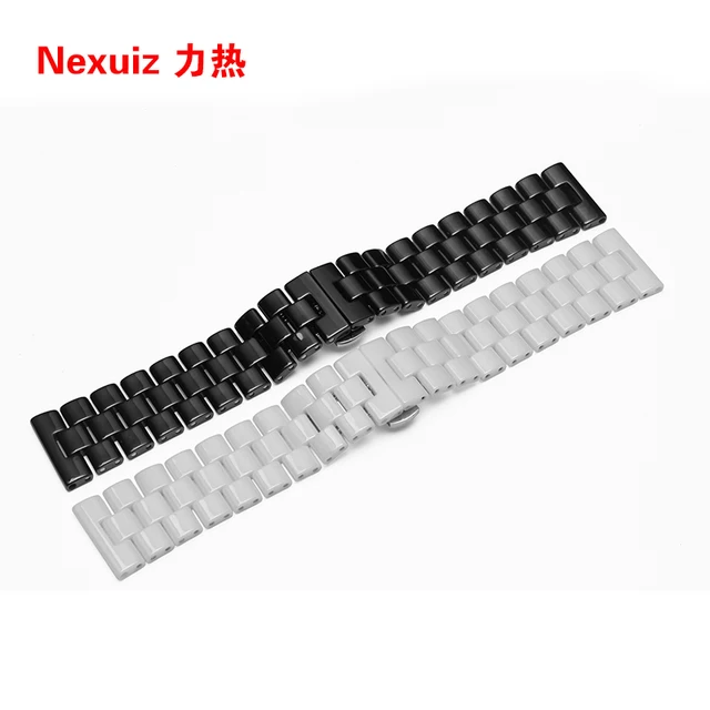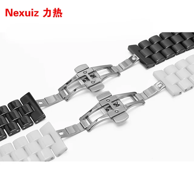 [해외] 24mm 높은 품질의 실버 depolyment 손목 시계 검은 색과 흰색 일반적인 세라믹스 시계 밴드 팔찌