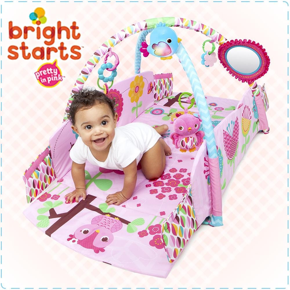 7つの楽しいおもちゃとピローがついた女の子に向けたキュートなプレイジム。赤ちゃんが心地よい気持ちになるポップサウンドも搭載♪ピンクの生地に、ことりやお花がデザインされた寝心地の良いマットは、四辺を立ち上げることができるので、お子様の成長に合わせて、5通りの使い方ができます。 |