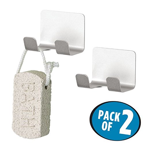 mDesign AFFIXX, Strong Self-Adhesive Metro Rustproof Aluminum Bathroom Shower Hooks for Loofahs, Razors - Pack of 2, Silver