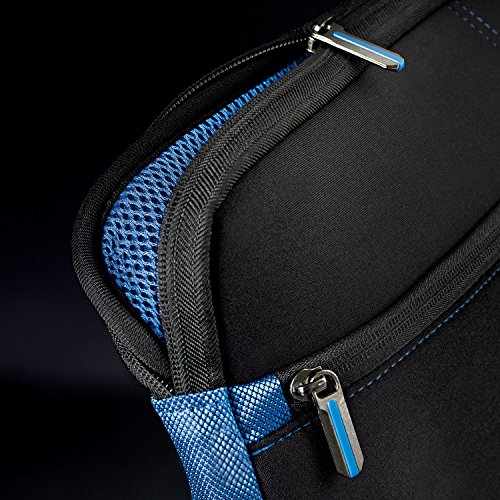 - Feature : Padded compartment protects laptops up to 16" / Front zippered pocket / Interior features blue mesh lining / Neoprene lining