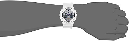 Brand, Seller, or Collection Name:Casio Model number:GA-100A-7ADR (G274) Part Number:GA-100A-7ADR (G274) Model Year:2010 Item Shape:Round Dial window material type:Mineral Glass Display Type:Analog-Digital Clasp:Buckle Case material:Resin Case diameter:51 Case Thickness:17 Band Material:Resin Band width:28 millimeters Band Color:White Dial color:Silver Calendar:Yes Special features:LIMITED EDITION Item weight:1.1 Pounds Movement:Quartz Water resistant depth:200 Meters