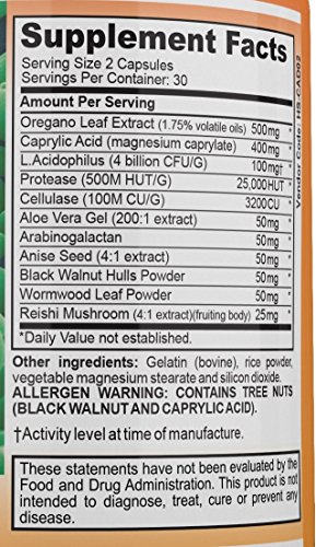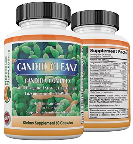 -. Feature : NATURAL VEGGIE SUPPLEMENTS NON-GMO: With advanced organic extract of herbal detox products: Our vital and vegan antifungal contains Oregano Leaf Extract, Lactobacillus Acidophilus 100 mg, Aloe Vera gel, Caprylic acid, Anise Seed, Black Walnut Hulls and Wormwood Powder for quick complete and ultimate prevention of candida albicans, oral thrush and fungus overgrowth. / RENEW REPLENISH ALL YOUR BODY now in a systemic approach. Restore your internal digestive strength, health, and intestinal gut flora. Use the best pure guard pills to balance, combat, control, stop, remove and get rid of chronic yeast in the colon, mouth, skin and nail. For male and female. Raw aged enzymatic ingredients from Mother Nature to help you plus extra homeopathic care. / POWERFUL ONE GENTLE SUPPLEMENTS: More and plus value with 1275 mg serving size caps. Candid Cleanz can naturally flush out toxins effectively. Acts like a shield when killing fungus. Help to make die off effects of candida yeast gone from your life. / START FIRST BY ATTACKING THE CAUSE OF THE PROBLEMS: External treatments like creams, liquids are not optimum and holistic solutions. Cleansing Candida overgrowth is definitely the key to aid with leaky gut and problems with digestion caused by yeast cleanses. It gives clear freedom to your digestive system / TOP RATED NATURAL VEGETARIAN FORMULA - USA MADE: Our original and potent candida supplements provide easy, fast and rapid support for men and women. Free of artificial flavors, ingredients or colors. Premium product manufactured according to Good Manufacturing Practices (GMPs) for your safety! 30 Days. Not tablets. 100% Lifetime Satisfaction Guarantee purely and simply