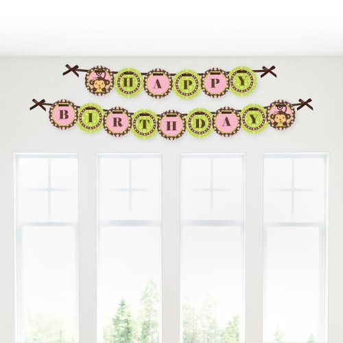 Studio : Big Dot of Happiness, LLC Publisher : Big Dot of Happiness, LLC Binding : Toy Product Description Our monkey girl birthday party garland banner will add the finishing touch to your themed birthday party! This birthday banner says "HAPPY BIRTHDAY" and is perfectly finished with two adorable characters for each end. The circles are printed individually on premium-grade satin paper with a photo-like shine (which is made in the USA), and will match your birthday party theme perfectly! Simply string up your scalloped circles garland banner on the included satin ribbon then hang for the finishing touch to any birthday party. 0