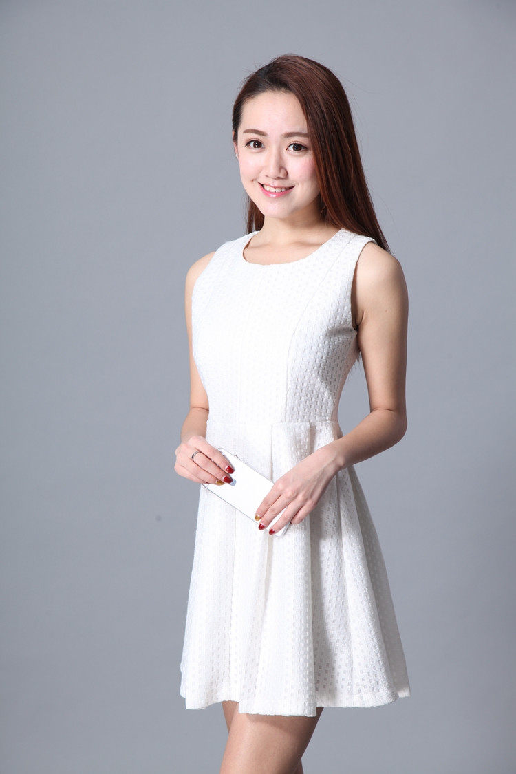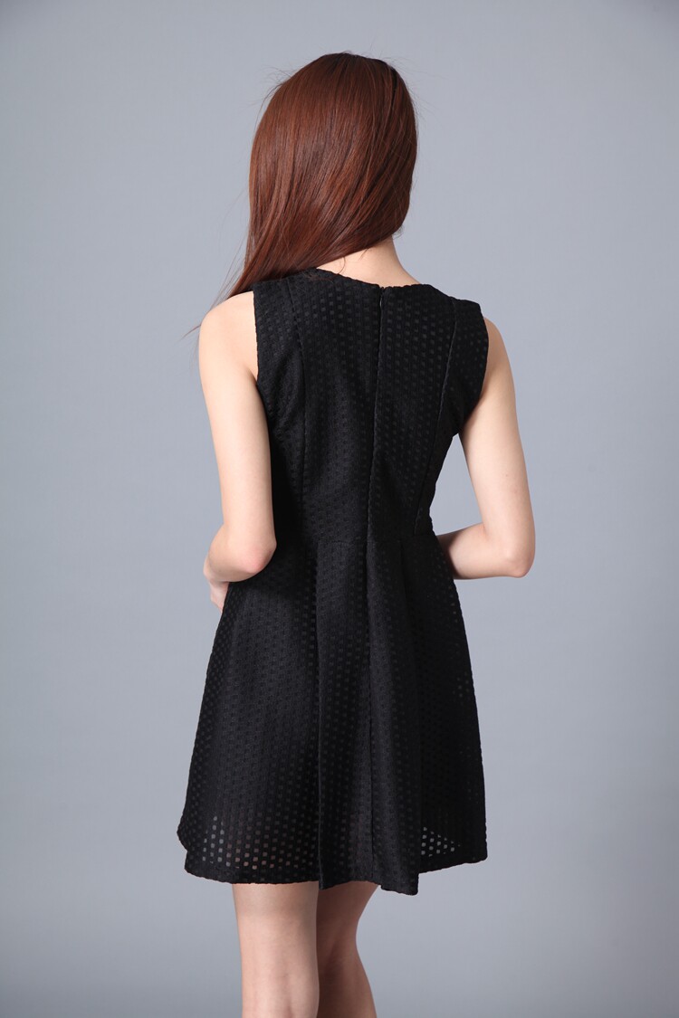 Elegance Like Sleeveless Round Neck A Line Fitted Pompon Midi Dress