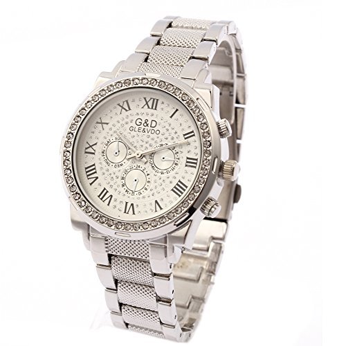 -. Title : G&D Women's Silver-Tone Stainless Steel Rhinestone Wrist Watches
