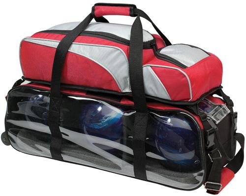 Studio : Ebonite Bowling Products Publisher : Ebonite Bowling Products Binding : Misc. Product Description Light weight for easy transport on airplanes; see-through top and sideCAPACITY: 3 BallsCOLOR: Silver/Red/BlackWHEELS: In-line designPOCKETS: Removable pouch that accommodates shoes and accessories
