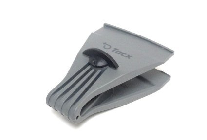 Use it by pinching it between the rim and the chute.