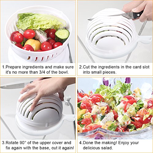 Salad Cutter Bowl, AmyHomie 60 Second Salad Maker, Food Grade ABS Vegetable Cutter, Salad Chopp...