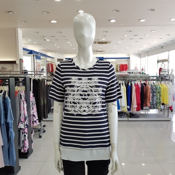가로 스트라이프 밑단배색 기본티셔츠-JA7U4-WKS700-413