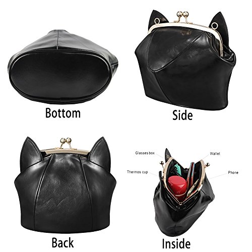 -. Feature : Handbag Material: High-grade quality PU fabric, high - quality polyester lining material, soft surface material technology.When it rains, the leather clutch shoulder bag has a strong waterproof function.Handbag Material: High-grade quality PU fabric, high - quality polyester lining material, soft surface material technology.When it rains, the leather clutch shoulder bag has a strong waterproof function. / Bag size: Length 20cm, width 11cm, height 18cm / 7.87x4.33x7.09(in). Weight: 270g.This fashion outdoor lovely cat ear bag is very light. / Purse Design: Perfect shapes, cute cat ears design, light gold clip, a key hook, 130cm adjustable shoulder strap. The leather bag is opened and closed by the clip buckle. / Occasion: Girls can take this black frame cute purse to go to party,school,travel, work,go shopping and playing. Perfect exquisite mini single shoulder crossbody bag,it is a best gift to your friend and yourself.It is very popular in China and Japan in 2016. / Capacity: Ladies can put phone, wallet, chargers, pens,mini umbrella ,keys,sunglasses and cosmetics into this cat bag. It is not easy to peeling, deformed and tear.A4 paper and ipad can not be put in the frame clutch bag.