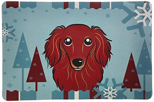 Caroline's Treasures BB1710CMT Winter Holiday Longhair Red Dachshund Kitchen or Bath Mat, 20 by 30", Multicolor