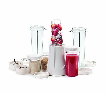 [Product Information]- The complete blender and grinder set, with 2 large and 2 small blend-n-serve cups and lids