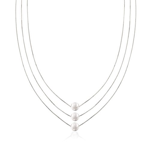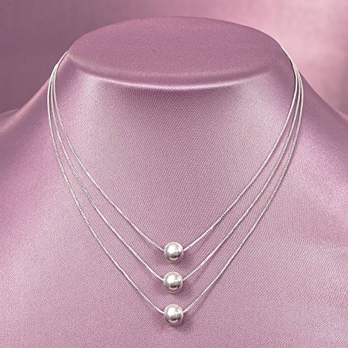 Ross-Simons' sterling silver collection makes luxurious looks more affordable while delivering quality and style. Our gleaming triple-tiered necklace cascades 18", 19" and 20" box chains, all set in sterling silver with white rhodium to prevent tarnishing. Each slim strand highlights a high-gloss 9mm bead, creating an instantly layered design -- a popular look among trendsetters and traditionalists alike. Springring clasp, sterling silver layered bead necklace. Each Ross-Simons item arrives in a fine jewelry presentation box. Shop Ross-Simons jewelry risk-free as all items include a 30-day, 100% money-back guarantee.Feature