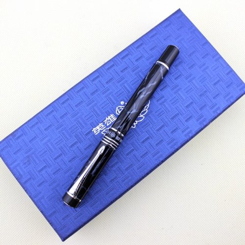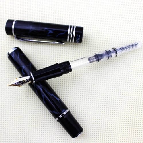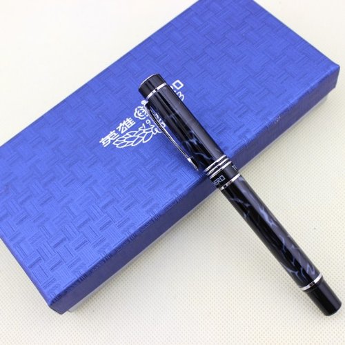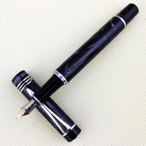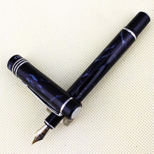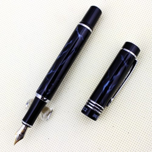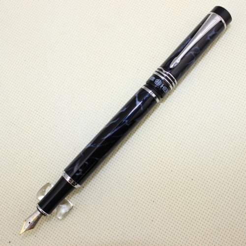 -. Title : Famous fountain pen HERO 7022 Black and Blue Marbling with advanced medium nib iridium