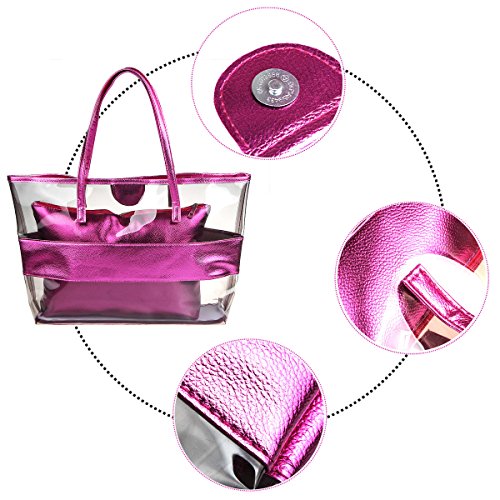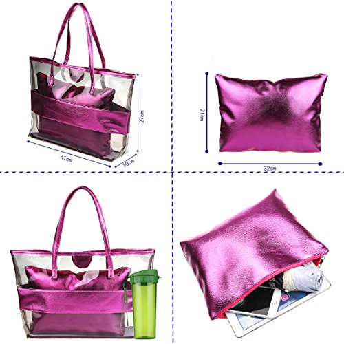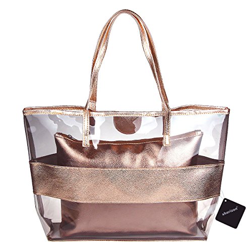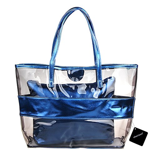 xhorizon 2 in 1 Waterproof Semi-clear Tote Stripe Beach Shoulder Bag Product Features: -100% brand new! Material:PVC+ Top-grade PU leather;