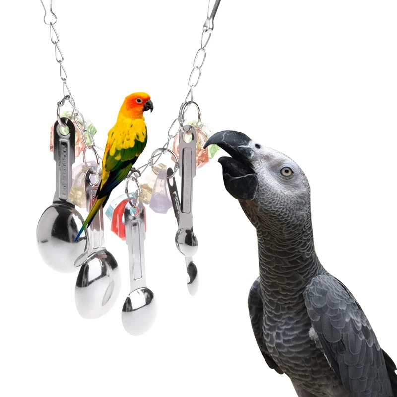 Model Number:Chain Acrylic Parrot Toys Metal Spoon Colorful