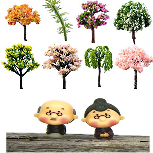 Material:Resin.Package content:1pcs grandpa,1pcs grandma and 8 Trees,other accessories are not included