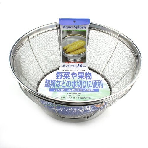 -. Title : Pearl Aqua Splash Stainless Steel Kitchen Colander 34cm H-9267 (Japan Import)