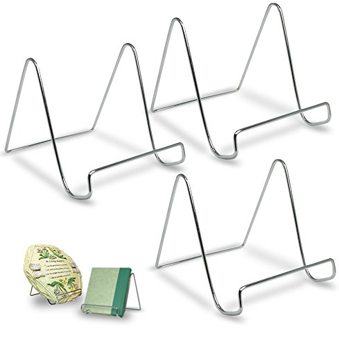-. Feature : Smooth chrome finish 3"H easel / Smooth Chrome Wire Easel / Non-tarnishable chrome finish / Attractive way to display smaller plates, books, plaques, etc.