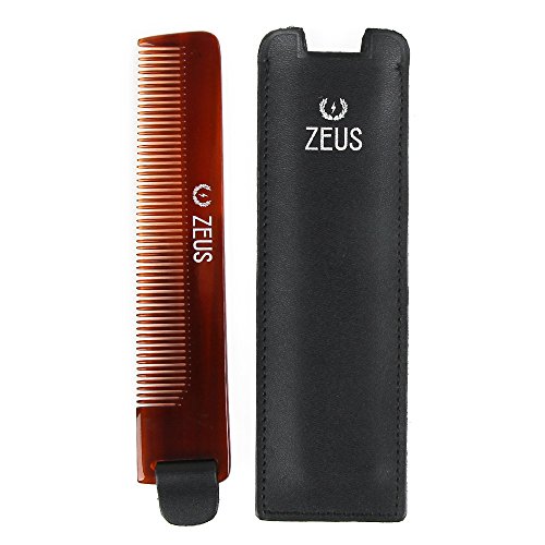 Zeus Handmade Saw-Cut Pocket Beard Comb with Leather Sheath - 5.25” x 1” - Static-Free, Fine-Toothed Comb for Beards and Mustaches