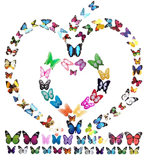 -. Feature : Vivid butterfly sticker set: 80 pieces artificial butterfly stickers with different style, DIY different shape you like to enjoy different moods. / Good decoration gadgets: Become an interior decorator and transform your living space to extraordinary one with these unique stickers. / Durable and Reusable: Butterfly Wall Stickers - made of PVC material which can last a long time, Easy to clean and use again. / Versatile: Apply to decor a theme party, Wall Decals, Butterfly museum embellishment, Children room, Photography background, Christmas, Wedding, Birthday, etc. / Easy to stick: Can be used on any dry, Clean and smooth surface.