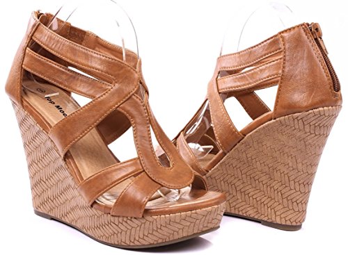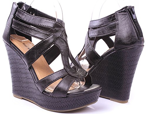 - Title : Lindy-1 Faux Leather Gladiator Strappy Dress Platform High Wedge Sandals