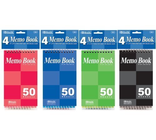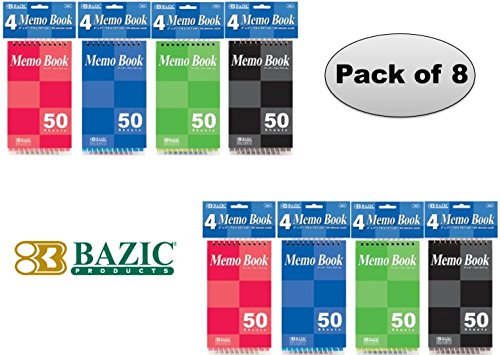 Bazic Top Bound Spiral Memo Books, 3-Inch-by-5-Inch, 50 Sheets, Pack of 8