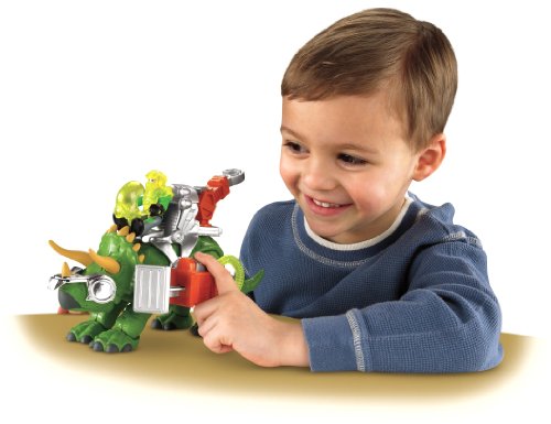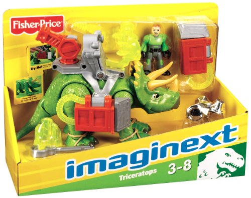 - Feature : Imaginext's dinosaur toys turn imaginary play into a "roarin'" good time / The Triceratops is equipped with two battering rams on either side of his harness, he now has triple the ramming power / Press a button and the battering rams extend for great action / Comes with a figure, armor and fun kid activations / All armor is removable from the dinosaur for classic dino play